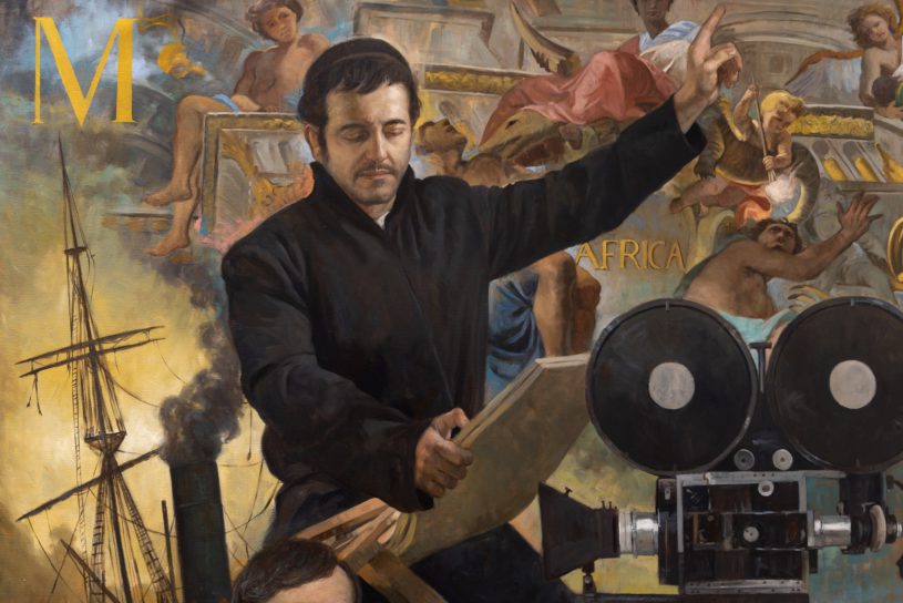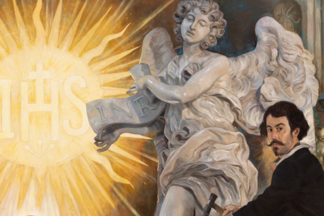 这幅画作呈现了16至21世纪的耶稣会会士以及七大艺术领域的艺术家之间的关系,描绘了耶稣会会士在音乐、文学、建筑和其他艺术领域所带来的深远影响。三联画的中央画作尺寸为 609 x 274 公分,描绘的人物包括:耶稣会会祖圣依纳爵.罗耀拉、意大利知名的艺术家吉安.罗伦佐.贝尼尼(Gian Lorenzo Bernini)、在南美洲传教的耶稣会士作曲家多梅尼科.齐波利(Domenico Zipoli)、巴洛克画派早期的代表人物伯铎.保禄.鲁本斯(Pedro Pablo Rubens)、深受耶稣会影响的法王路易十四(King Louis XIV)、曾在耶稣会学校接受教育的知名导演亚佛列德.希区考克(Alfred Hitchcock)等。