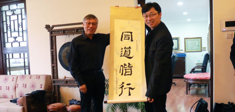 香港教區周守仁主教一行四人於四月廿日參觀《北京中國學中心》,由執行總監古嘉文先生接待,周主教以一幅「同道偕行」墨寶相贈。同行者還包括夏志誠輔理主教、蔡惠民副主教及私人助理黃家俊先生。