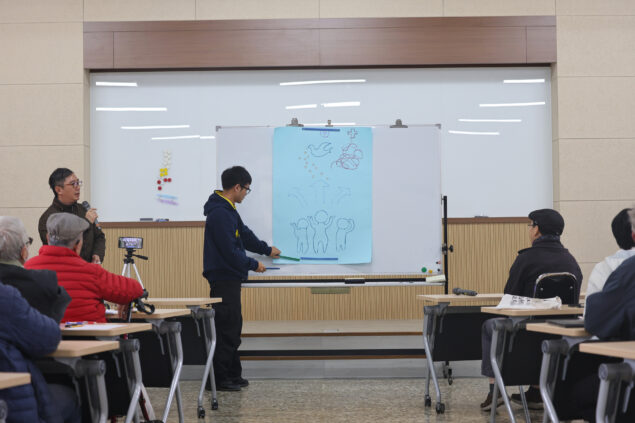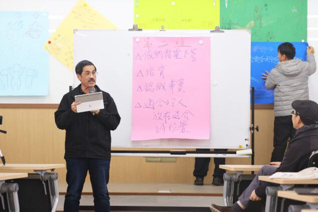 時間來到聚會的最後一天,省會長董澤龍神父在清晨主禮感恩聖祭,慶祝入會60週年的劉家正神父及吳智勳神父共祭。籌備小組將最後一個主題聚焦在使命及培育,崔寶臣神父以「聖經神學視角下天主的教育法」為題,講述天主如何在曠野中培育梅瑟及天主子民,幫助以民從奴役走向自由、從累積瑪納到信賴天主,也讓梅瑟從倚賴才幹轉向謙和地牧養與領導。方進德神父則從「培育是為了使命」的角度,幫助大家反思耶穌會在台灣當前的使命,以及會士及使命伙伴當下最需要哪方面的培育。各小組在進行最後一次靈修交談後,透過繪製圖文並茂的海報回到大組報告,分享成員的心得與共識。